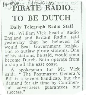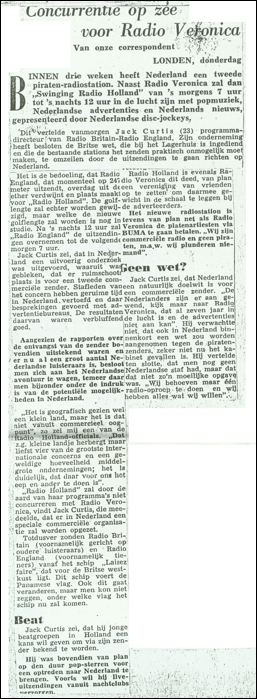 broadcast on 602 kc from the radio ship Bon Jour until the summer of 1962.