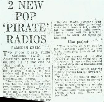 [69] “Pirate Radio plea to go ashore” “Broadcasting reporter”, “The